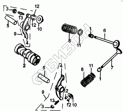 Графический каталог запасных частей к технике: ЗиД Двигатель 1Р39FMB-Н. Кулачковый вал и клапаны