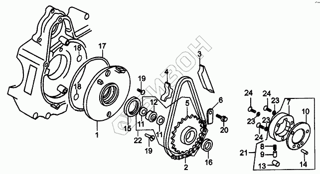 Графический каталог запасных частей к технике: ЗиД Двигатель 1Р39FMB-Н. Обгонная муфта