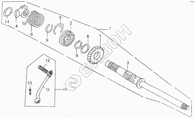 | 7 | 27100/1P50FMG-H | Вал кикстартера в сборе |