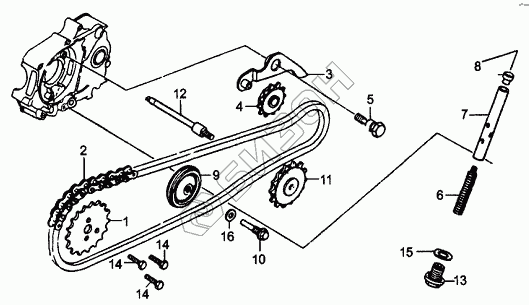Графический каталог запасных частей к технике: ЗиД Двигатель 1Р39FMB-Н. Распределительная цепь и натяжитель цепи