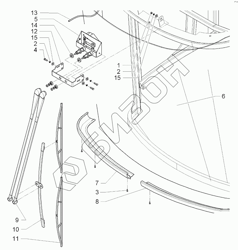 Графический каталог запасных частей к технике: AGCO Fendt-6300C часть3. Cab Front Glass