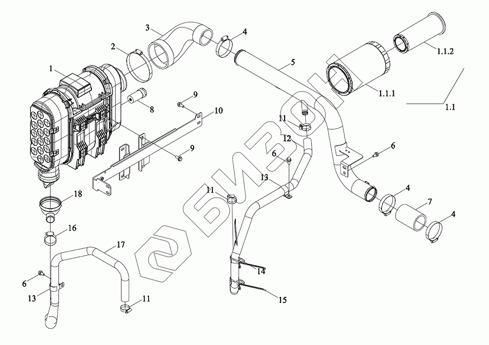 | 3 | TD1S110110001K | Шланг выходной воздушного фильтра |