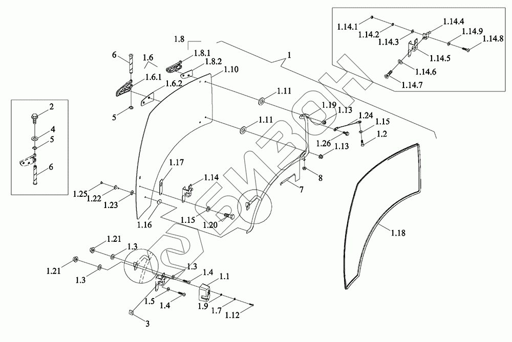| 1.14.2 | TS06451014116 | Кронштейн монтажный замка правой двери |