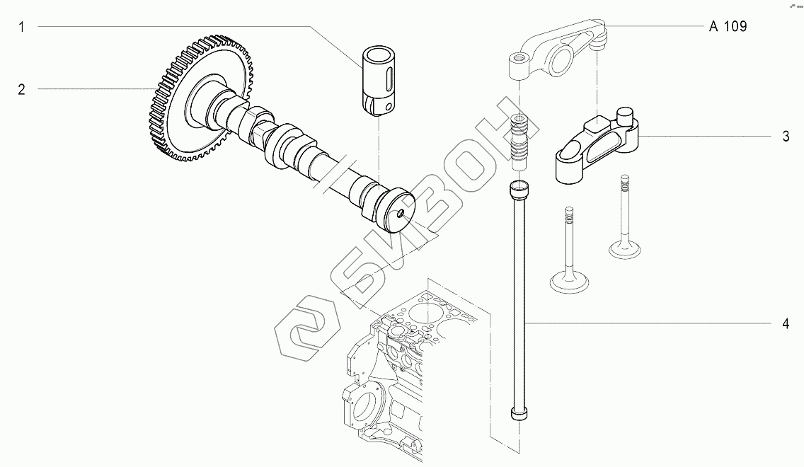 Графический каталог запасных частей к технике: Агротехмаш АТМ-7360. A108 Вал распределительный, привод клапанов