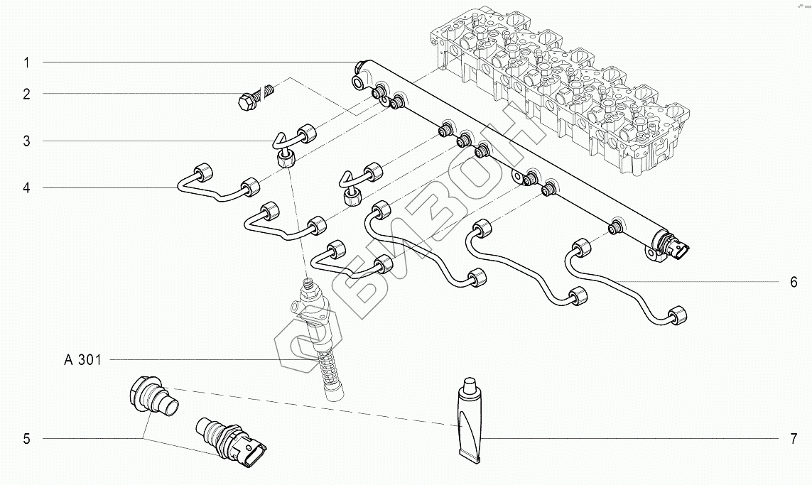Графический каталог запасных частей к технике: Агротехмаш АТМ-7360. A302 Рейка топливная