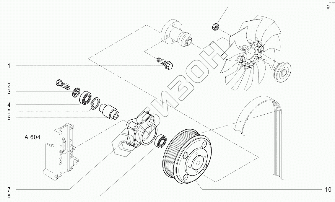 Графический каталог запасных частей к технике: Агротехмаш АТМ-7360. A603 Установка вентилятора