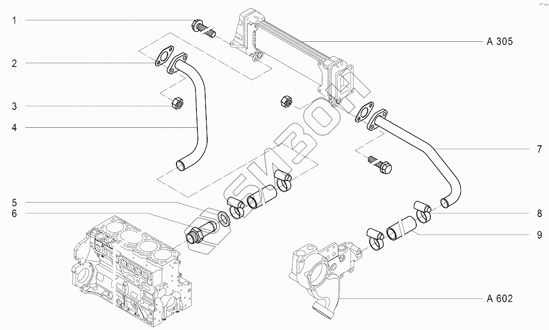 Графический каталог запасных частей к технике: Агротехмаш АТМ-7360. A605 Трубопровод системы охлаждения