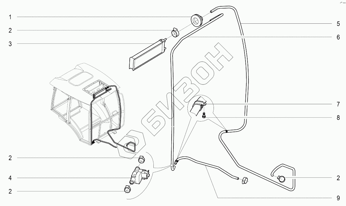 Графический каталог запасных частей к технике: Агротехмаш АТМ-7360. A610 Радиатор отопителя кабины, трубопроводы
