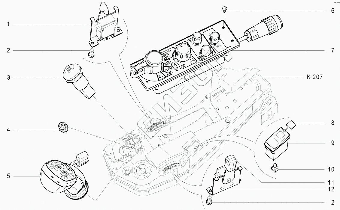 Графический каталог запасных частей к технике: Агротехмаш АТМ-7360. H207 Электрооборудование подлокотника