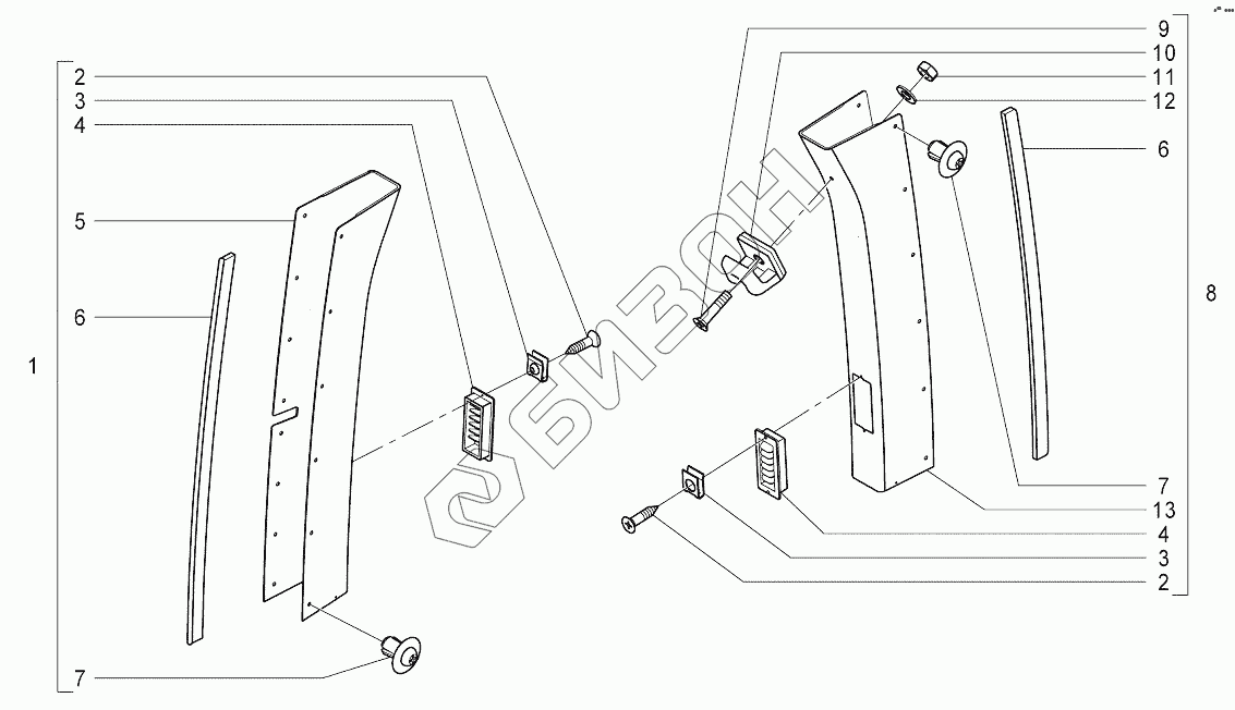 | 8 | 10001997 | Облицовка стойки левой в сборе |
