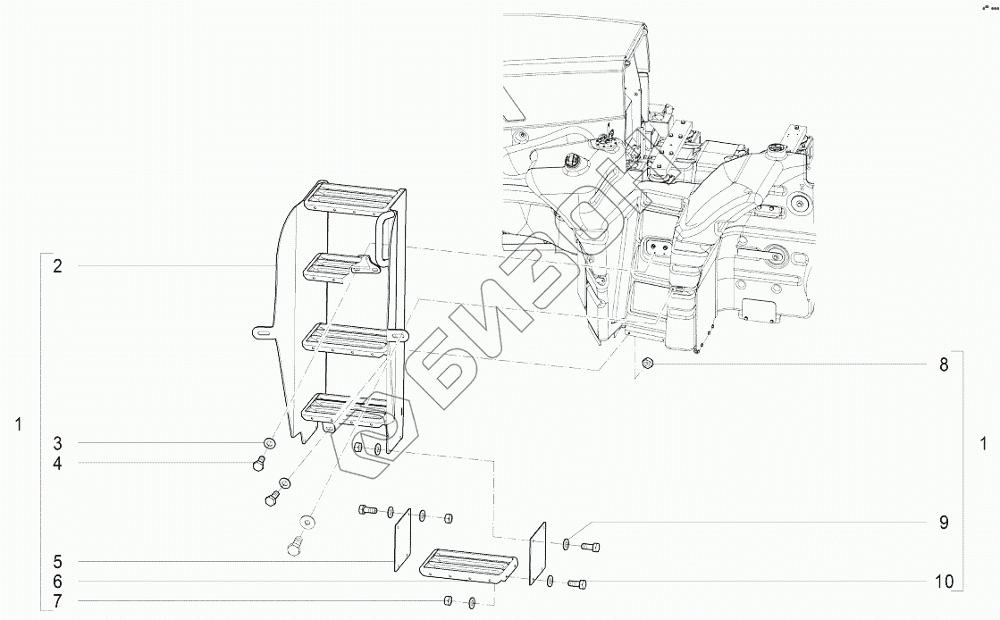 Графический каталог запасных частей к технике: Агротехмаш АТМ-7360. K408 Установка лестницы левой