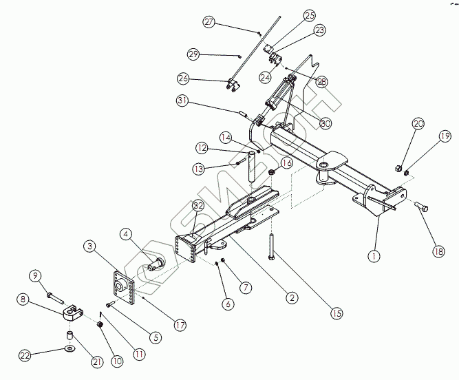 Графический каталог запасных частей к технике: Amity Wic Harvester 12 row 24s. HITCH ASSEMBLY