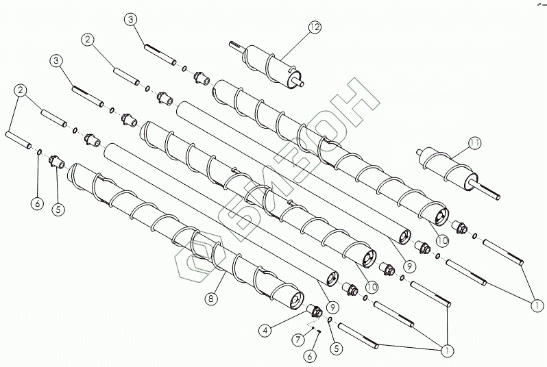 Графический каталог запасных частей к технике: Amity Wic Harvester 12 row 24s. REAR CLEANING ROLLS