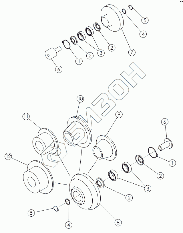 Графический каталог запасных частей к технике: Amity Wic Harvester 6 row 22s. Ролики