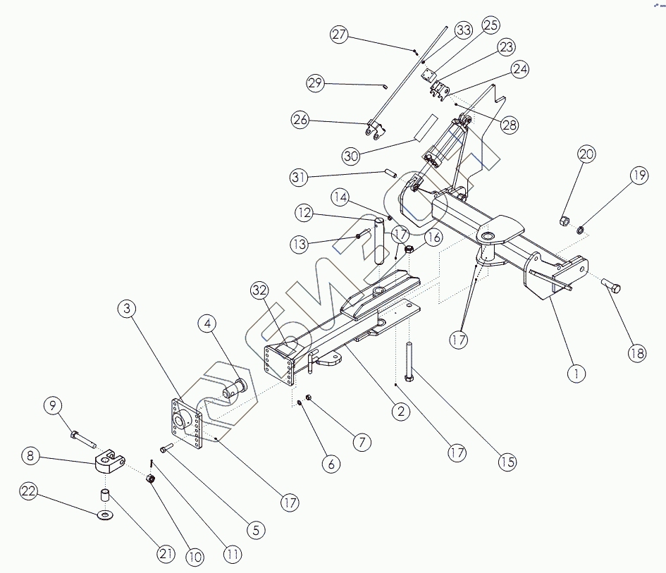 Графический каталог запасных частей к технике: Amity Wic Harvester 6 row 24s. HITCH ASSEMBLY