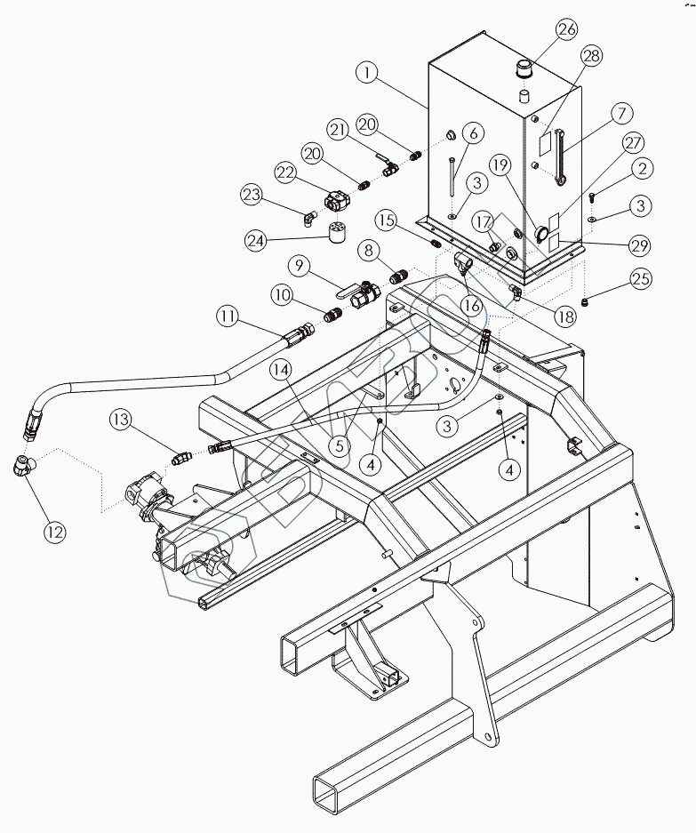 Графический каталог запасных частей к технике: Amity Wic Harvester 6 row 24s. HYDRAULIC TANK