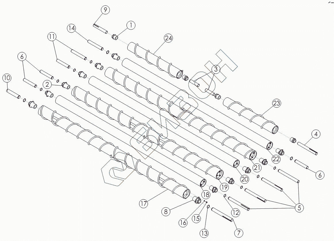 Графический каталог запасных частей к технике: Amity Wic Harvester 6 row 30s. CLEANING ROLLS
