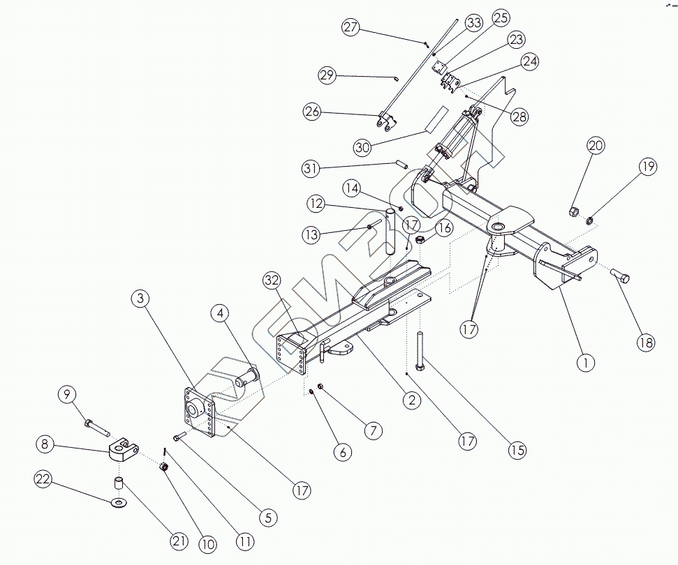 Графический каталог запасных частей к технике: Amity Wic Harvester 6 row 30s. HITCH ASSEMBLY