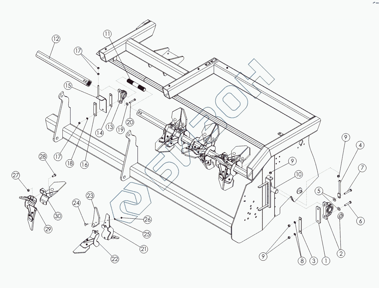 Графический каталог запасных частей к технике: Amity Wic Harvester 6 row 30s. PADDLE SHAFT