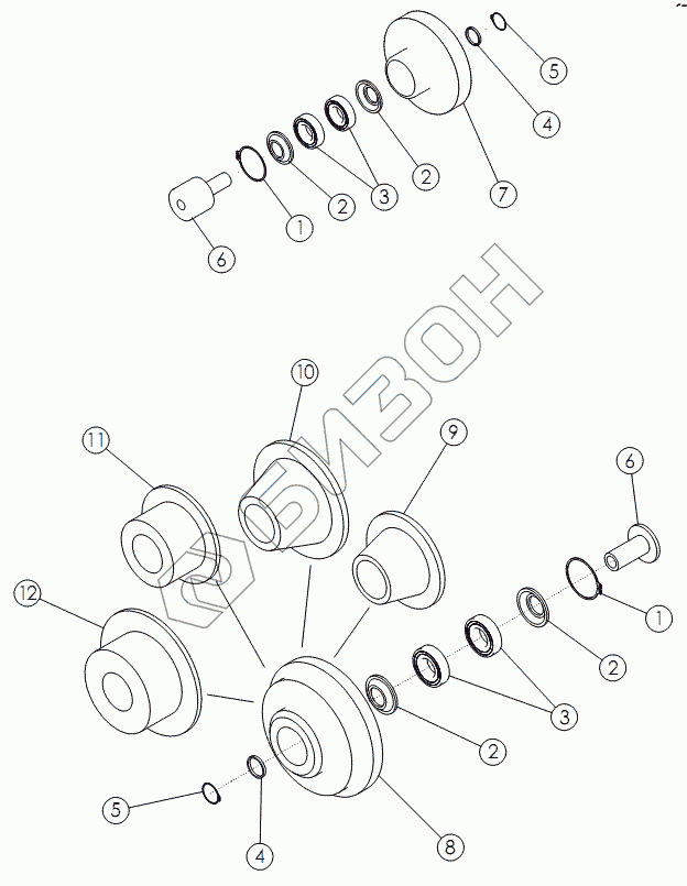 Графический каталог запасных частей к технике: Amity Wic Harvester 6 row 30w. ROLLERS