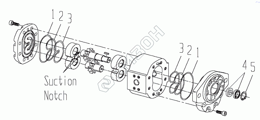 Графический каталог запасных частей к технике: Amity Wic Harvester 8 row 22s. Гидронасос
