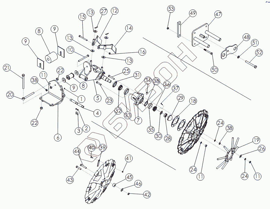 Графический каталог запасных частей к технике: Amity Wic Harvester 8 row 22s. Копач