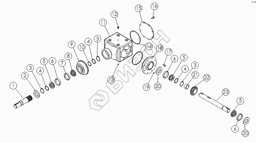 Графический каталог запасных частей к технике: Amity Wic Harvester 8 row 22s. Коробка передач