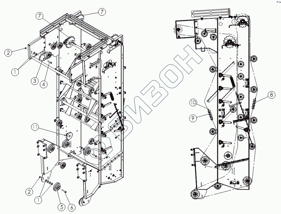 Графический каталог запасных частей к технике: Amity Wic Harvester 8 row 22s. Ременная цепь