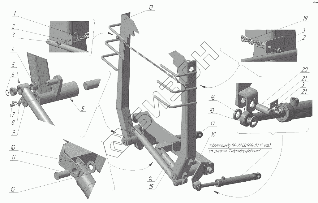 | 15 | ПР22.00.000-11 | Гидроцилиндр 3-50х28 D=50 мм, H=80 мм |
