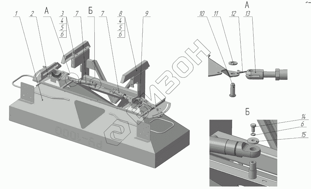 Графический каталог запасных частей к технике: Бобруйскагромаш РУ-1000. Бункер в сборе с гидроцилиндрами