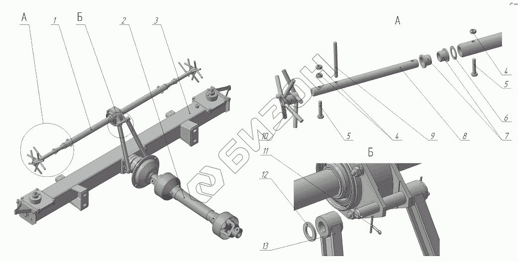 Графический каталог запасных частей к технике: Бобруйскагромаш РУ-1000. Вал в сборе с приводом