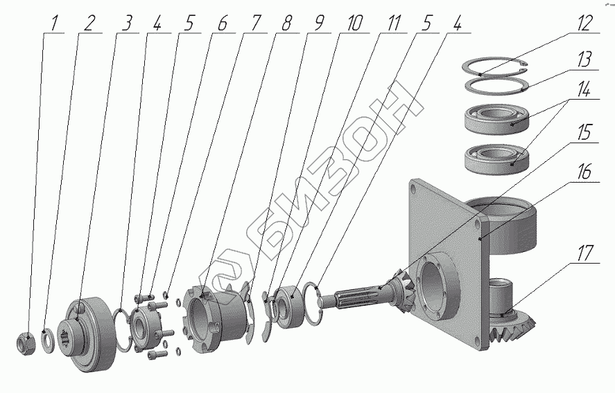 Графический каталог запасных частей к технике: Бобруйскагромаш РУ-1600. Передача коническая