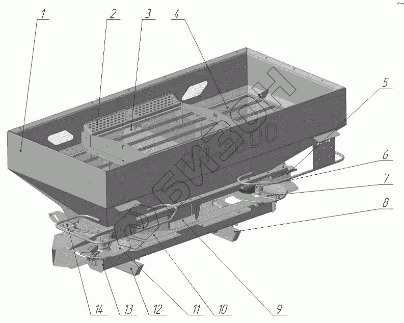 Графический каталог запасных частей к технике: Бобруйскагромаш РУ-1600. Рассеиватель удобрений минеральных РУ-160