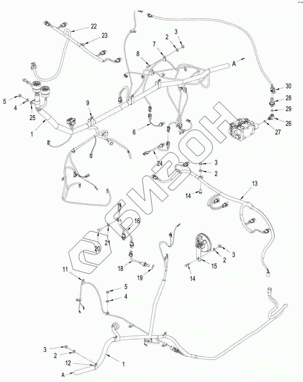 Графический каталог запасных частей к технике: CASE IH 430 Steiger 4WD. HARNESS - FRONT FRAME