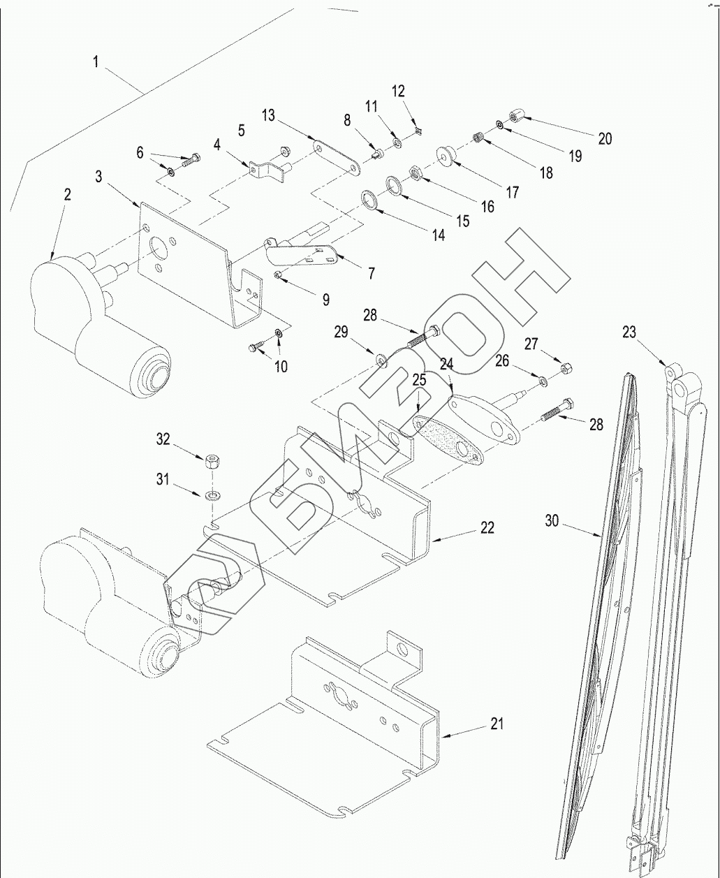 Графический каталог запасных частей к технике: CASE IH 430 Steiger 4WD. WIPER, WINDSHIELD - MOUNTING