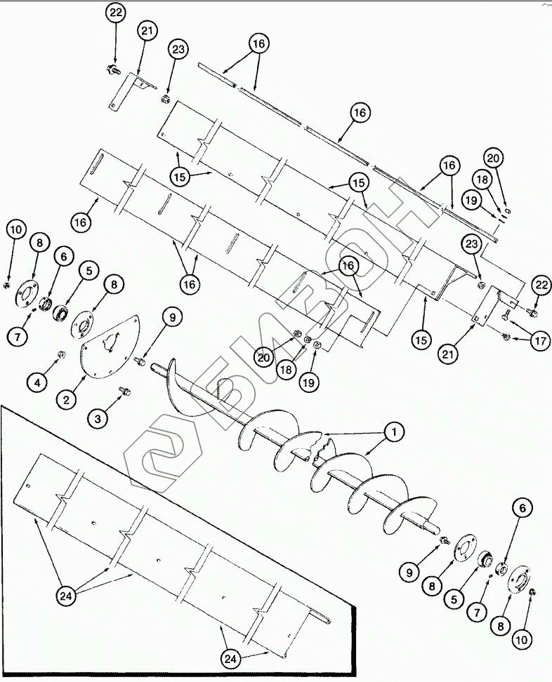Графический каталог запасных частей к технике: CASE IH Axial Flow 2388. AUGERS - GRAIN TANK, LOWER