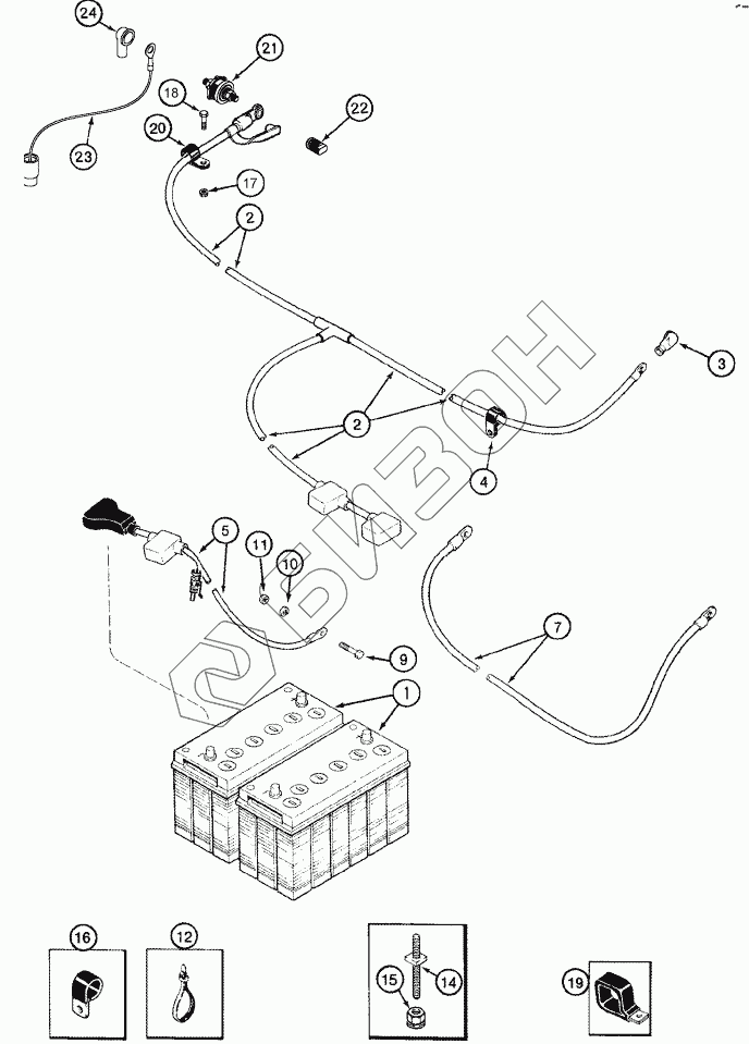 Графический каталог запасных частей к технике: CASE IH Axial Flow 2388. BATTERY - CABLES