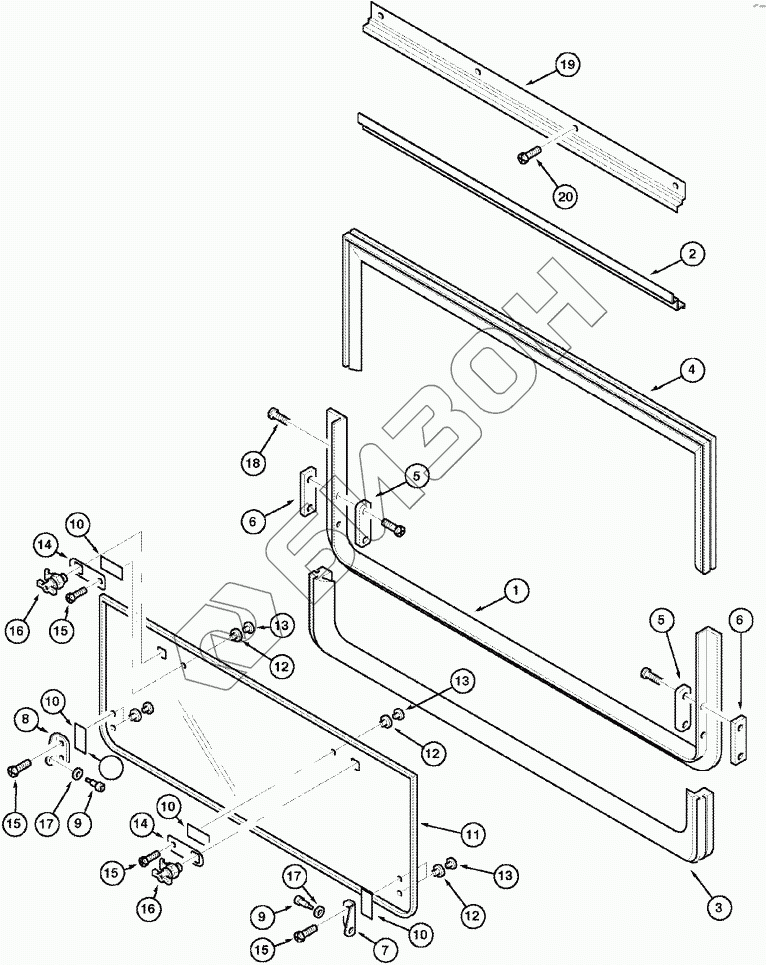 Графический каталог запасных частей к технике: CASE IH Axial Flow 2388. CAB - WINDOW, REAR - OPENABLE