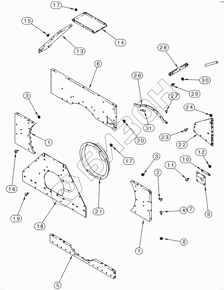 Графический каталог запасных частей к технике: CASE IH Axial Flow 2388. CAGE - REAR