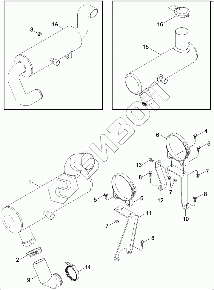 Графический каталог запасных частей к технике: CASE IH Axial Flow 2388. EXHAUST SYSTEM - MUFFLER