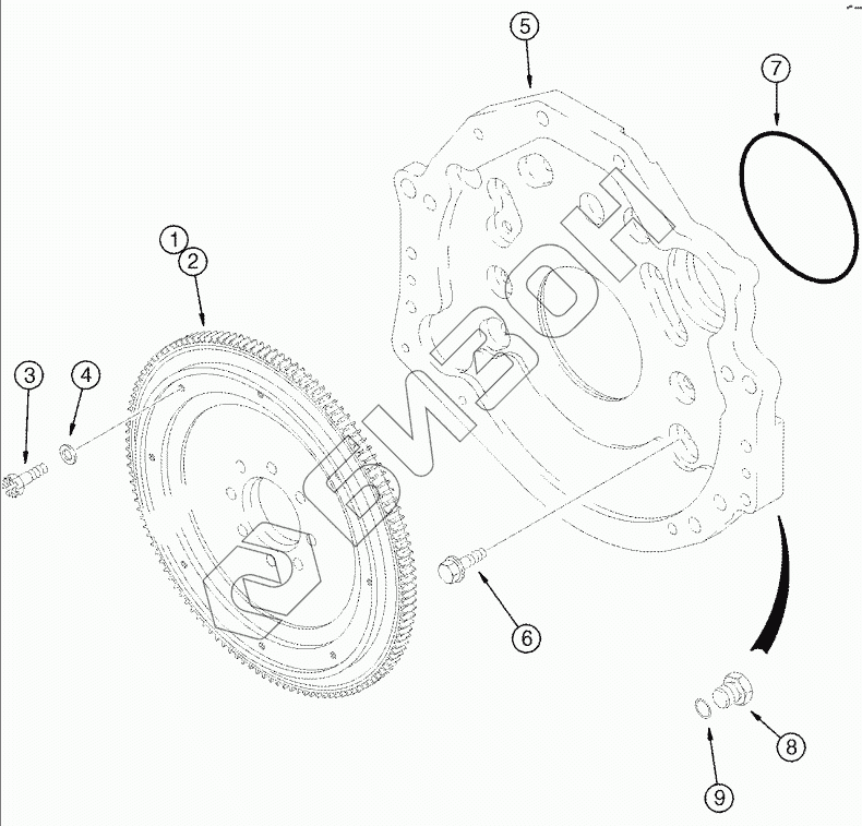 Графический каталог запасных частей к технике: CASE IH Axial Flow 2388. FLYWHEEL AND BACKING PLATE