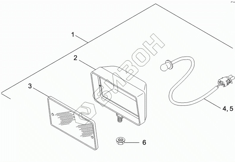 Графический каталог запасных частей к технике: CASE IH Axial Flow 2388. LAMP ASSY - GRAIN TANK