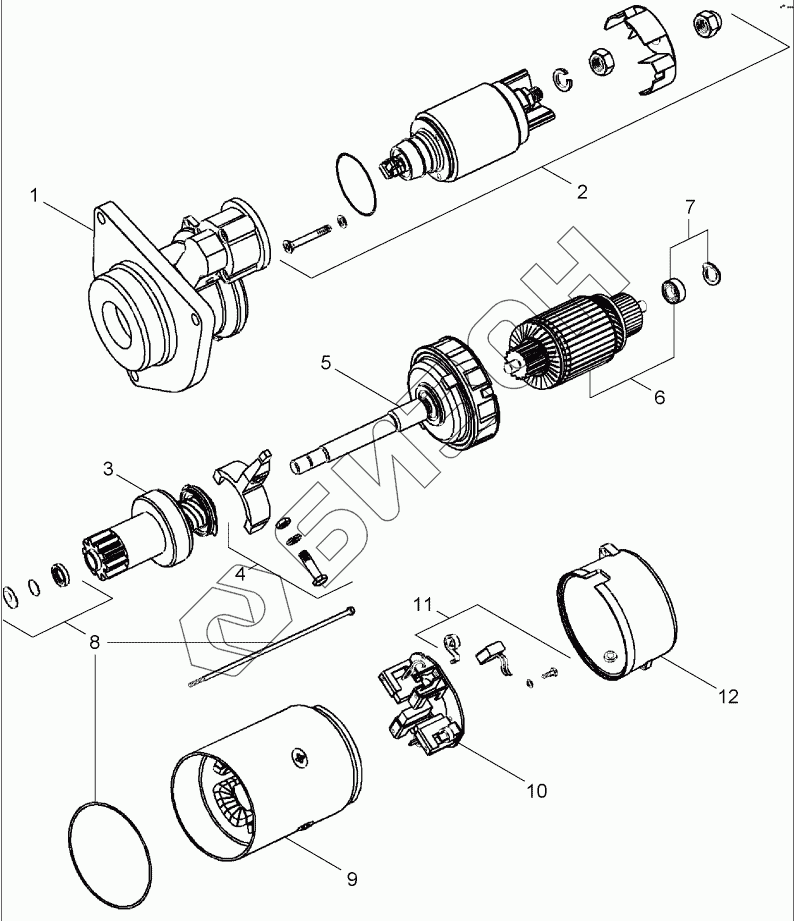 Графический каталог запасных частей к технике: CASE IH Axial Flow 2388. STARTER ASSY - ISKRA
