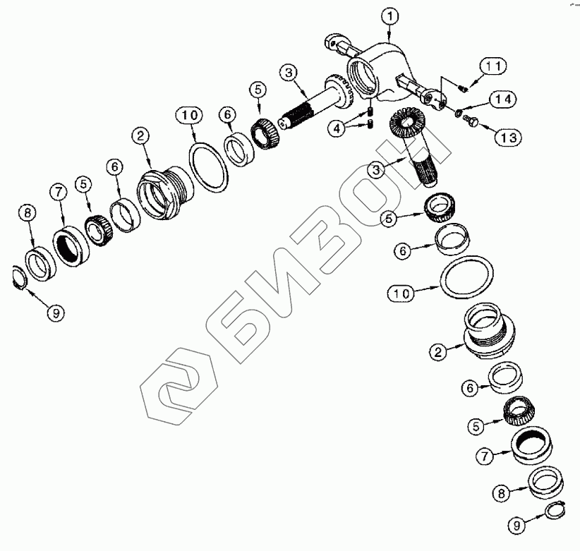 Графический каталог запасных частей к технике: CASE IH Axial Flow 2388. UNLOADER - UPPER GEAR HOUSING