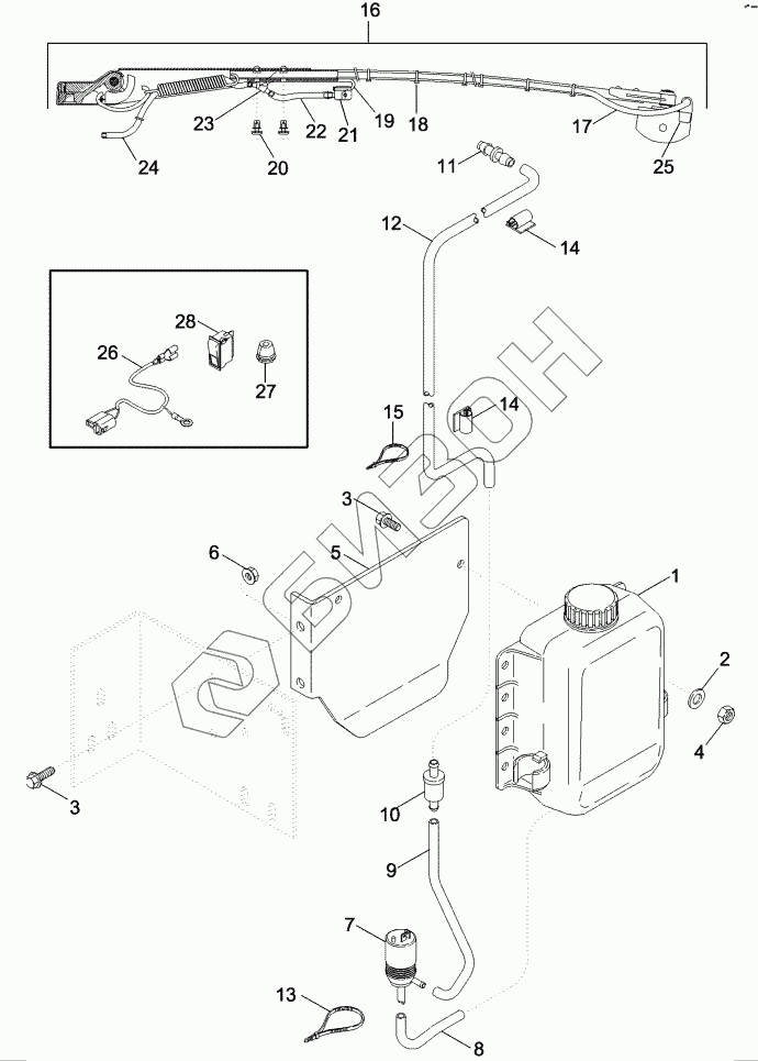 Графический каталог запасных частей к технике: CASE IH Axial Flow 2388. WINDSHIELD WASHER