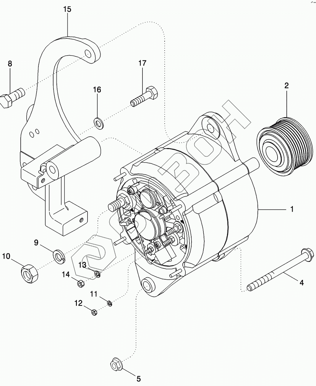 Графический каталог запасных частей к технике: CASE IH MX-240 Magnum. ALTERNATOR - MOUNTING