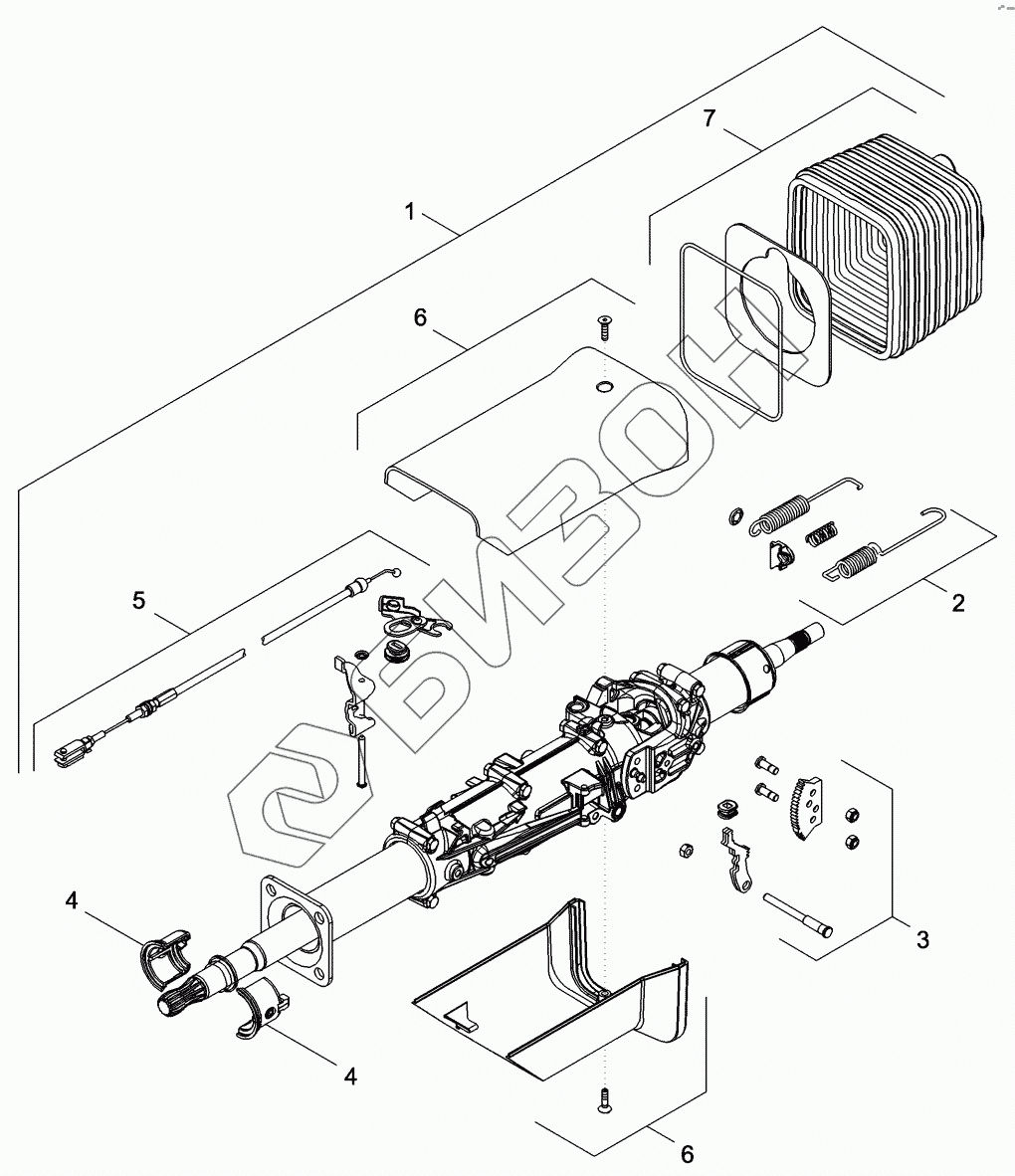 Графический каталог запасных частей к технике: CASE IH MX-255 Magnum. STEERING COLUMN ASSEMBLY