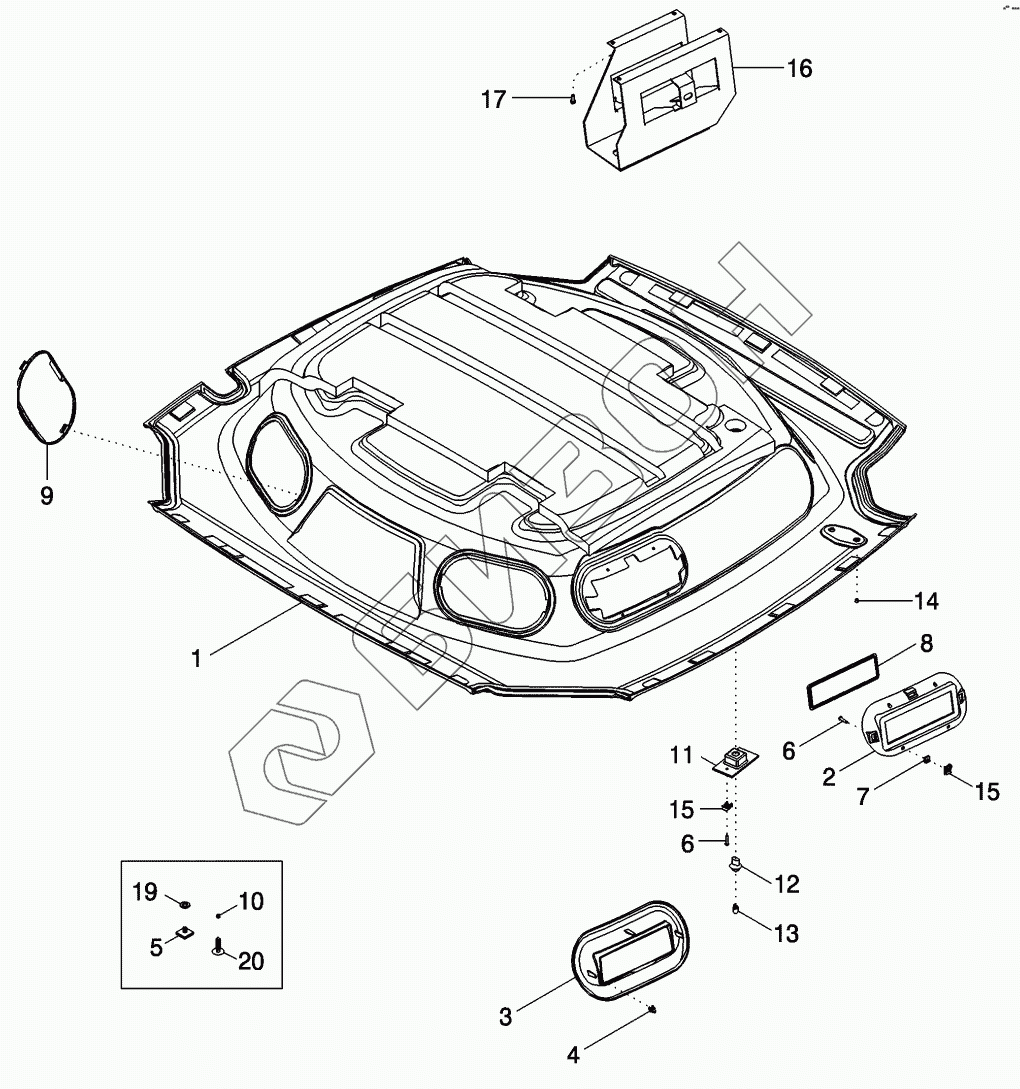 Графический каталог запасных частей к технике: CASE IH MX-285 Magnum. CAB - HEADLINER, STANDARD TRIM
