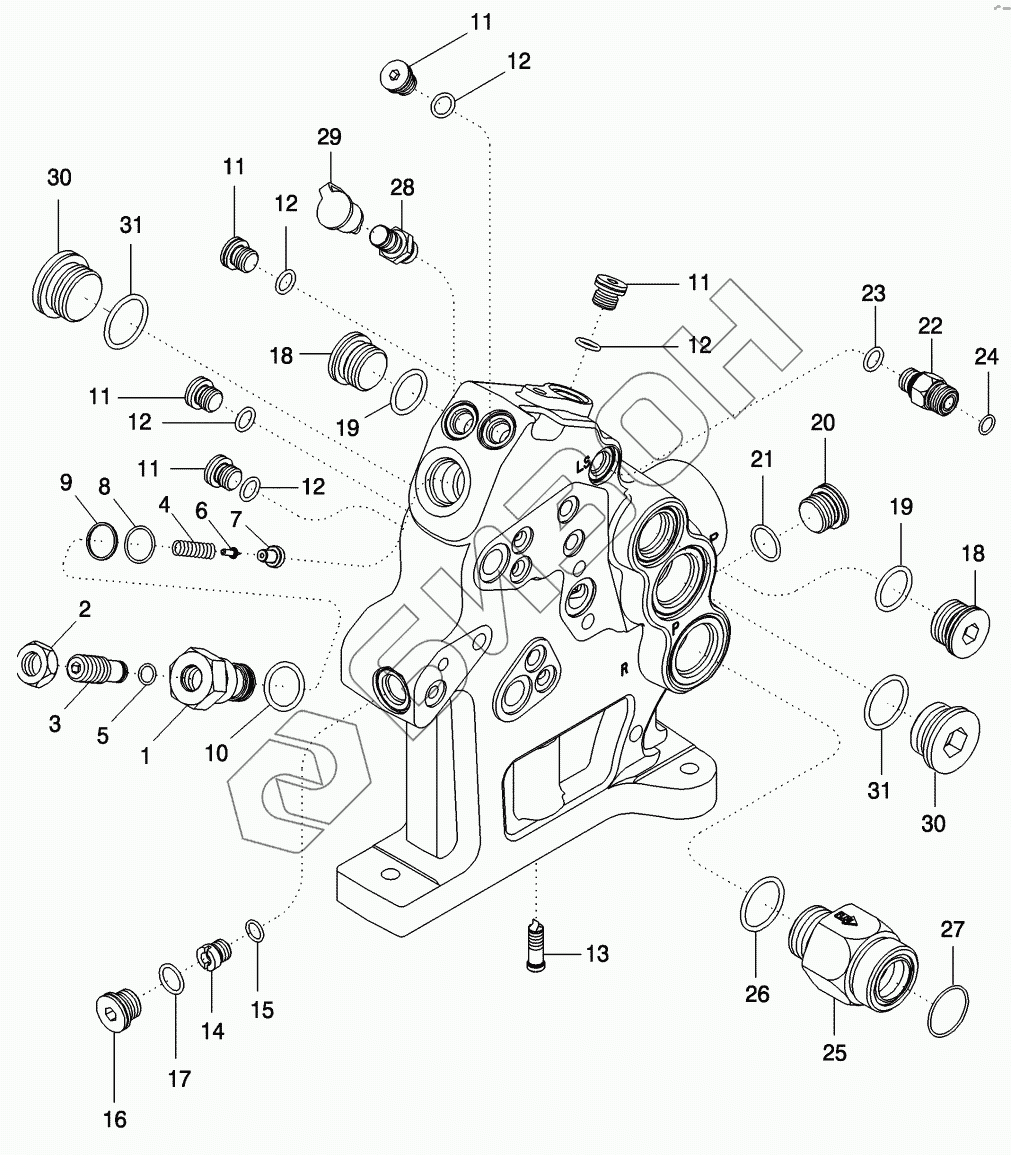 Графический каталог запасных частей к технике: CASE IH MX-285 Magnum. MANIFOLD VALVE ASSEMBLY