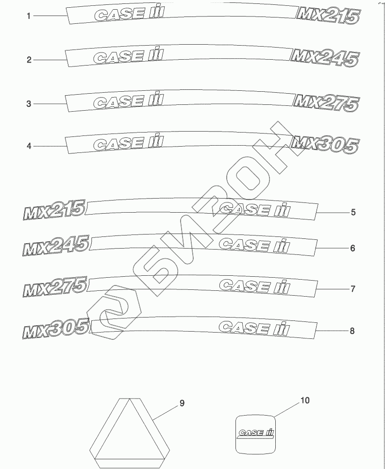 Графический каталог запасных частей к технике: CASE IH MX-305 Magnum. DECALS, BSN Z6RZ04001